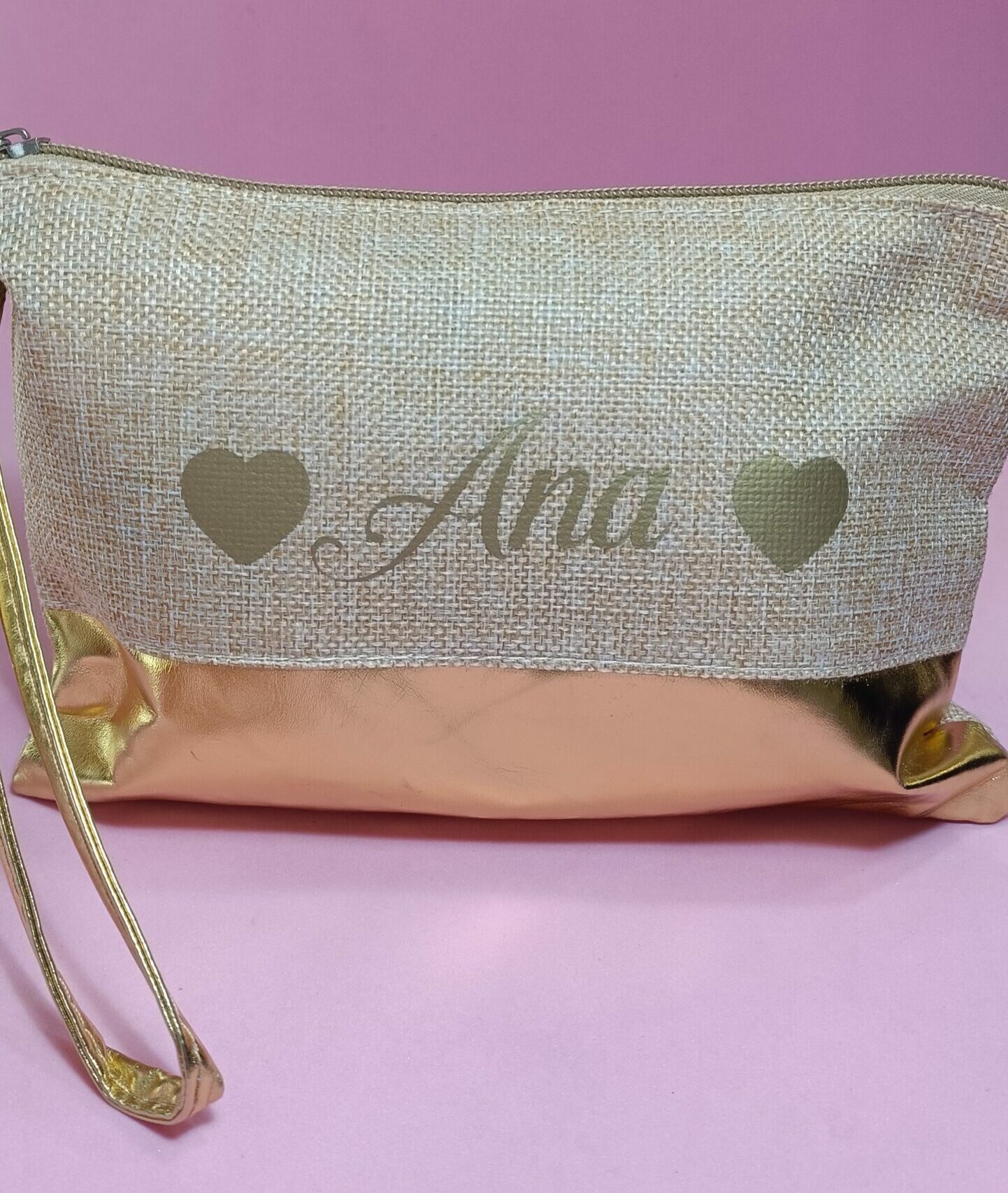 / Bolso de mano con detalles dorado y con nombre personalizado en dorado