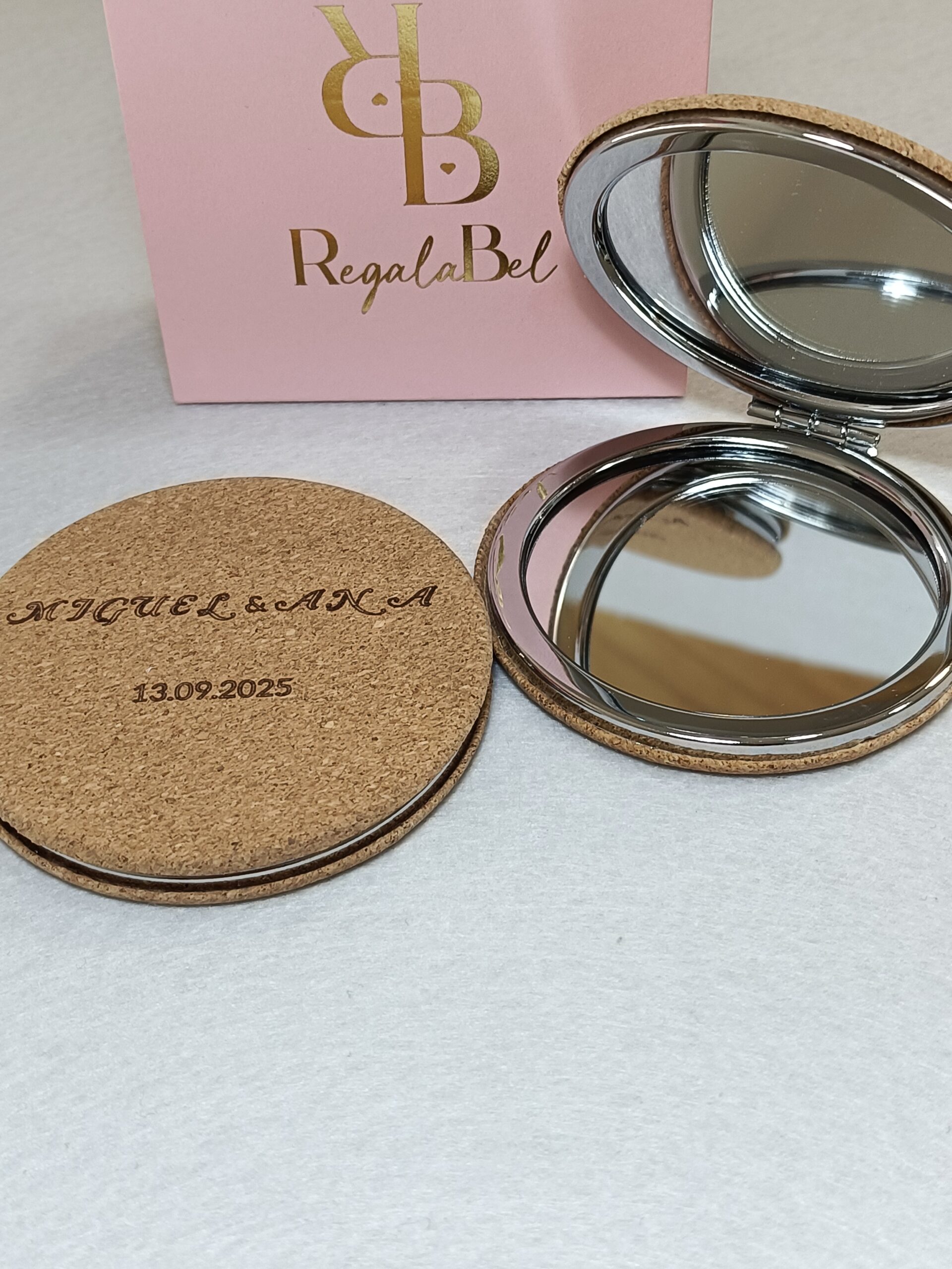Lleva siempre contigo tu toque personal con nuestro Espejo con Corcho Personalizado. Su diseño compacto y ligero lo hace ideal para incluir en el bolso, mochila o neceser, mientras que el acabado en corcho le aporta un aspecto natural, moderno y muy original.