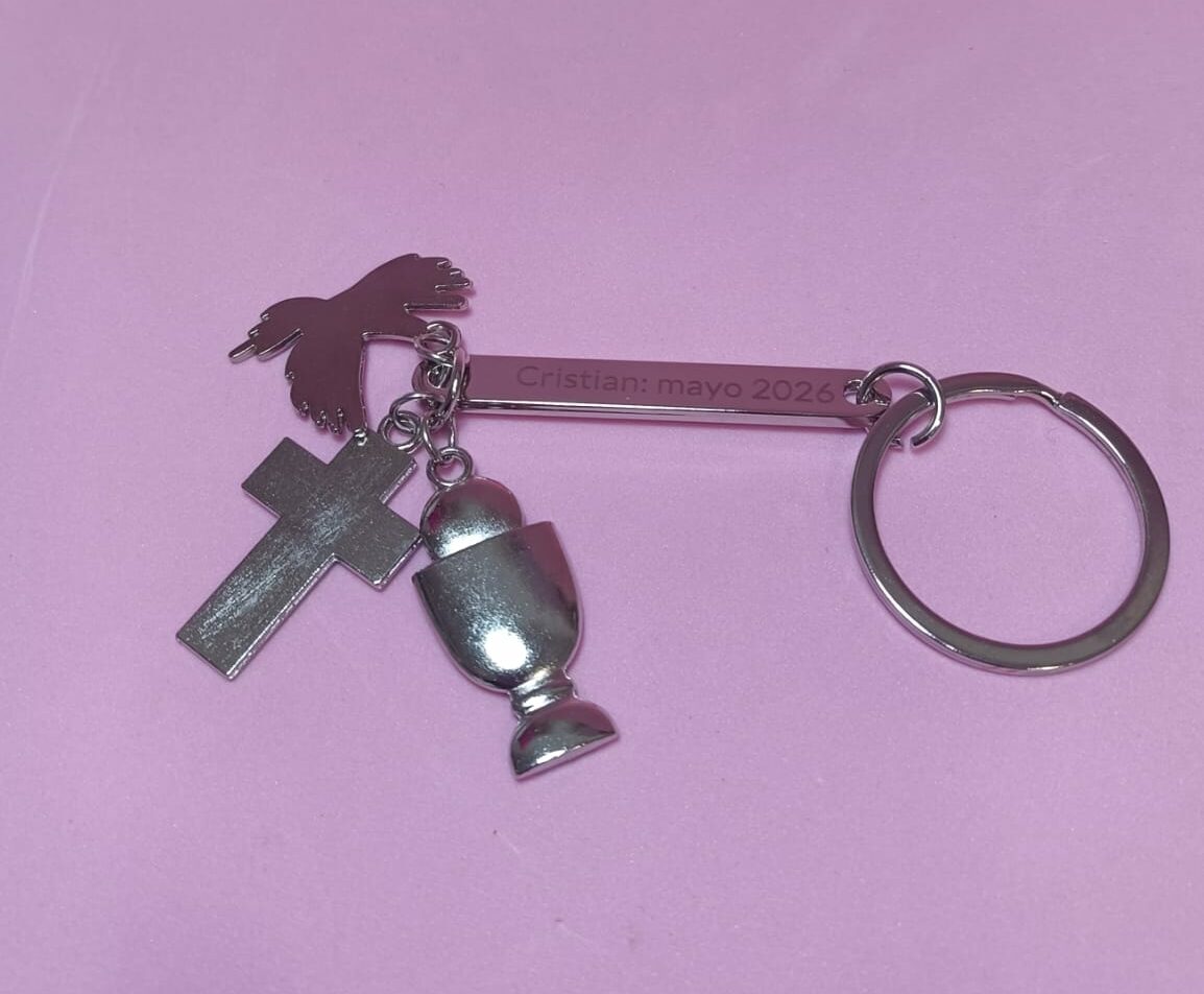Bonito llavero de recuerdo para tus invitados. Ideal para su grabación con laser en la barra, entre anilla y abalorios.
