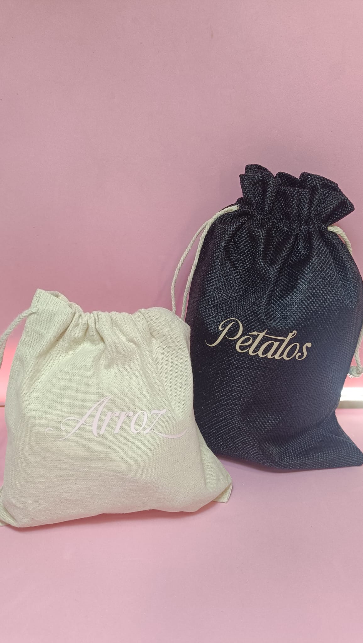 Saquitos de algodón color natural y cuerda ajustable natural, ideal para pétalos y arroz.