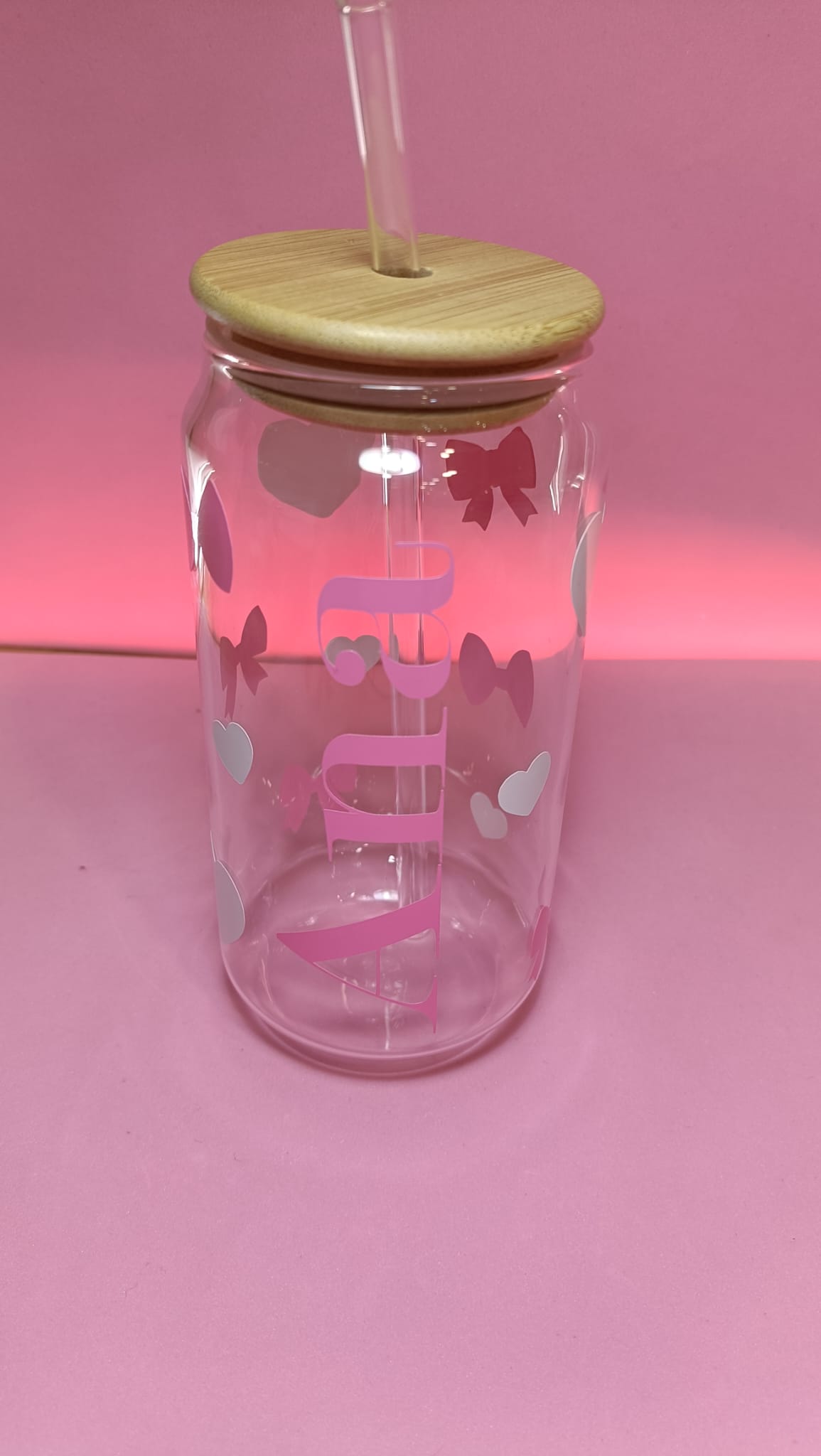 / Vaso personalizado de vidrio con tapa y pajita 500ml.