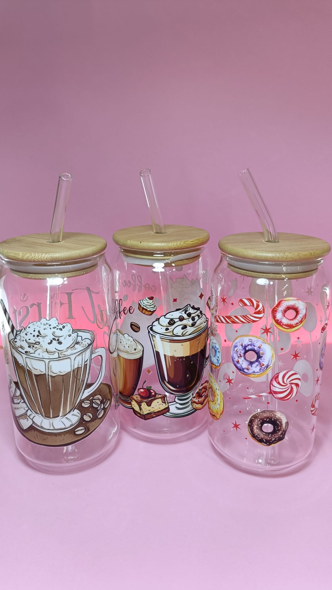 Vasos divertidos de vidrio con tapa y pajita 500ml. cantidad